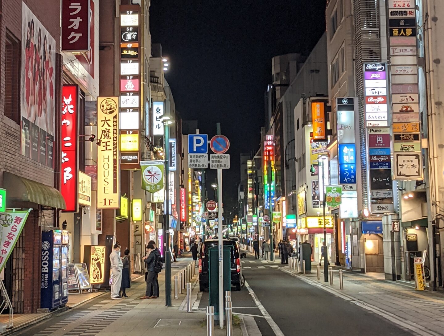 昼の仙台とはまったく違う表情を見せる夜の国分町・一番町。